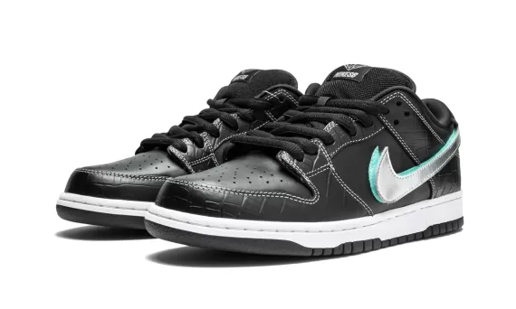 The Diamond Supply Co. x Nike SB Dunk Low “Black” quickly became one of the most sought-after sneakers of 2018, thanks to its striking design and premium detailing. This limited edition sneaker not only offers a bold aesthetic but also a piece of sneaker history, making it a valuable addition to any collection.