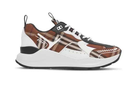 Step into timeless style with the Burberry Vintage Check Low-Top Sneakers "Brown." These low-top sneakers feature a brown cotton blend upper with a panelled design and the iconic Vintage Check pattern. The almond toe, front lace-up fastening, and double pull-tab at the opening add to the classic yet modern look. A branded... Read more Step into timeless style with the Burberry Vintage Check Low-Top Sneakers "Brown." These low-top sneakers feature a brown cotton blend upper with a panelled design and the iconic Vintage Check pattern. The almond toe, front lace-up fastening, and double pull-tab at the opening add to the classic yet modern look. A branded insole and chunky rubber sole complete the design, ensuring both comfort and style. Read less