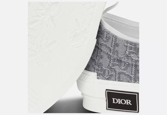 The B23 low-top sneaker showcases Dior Oblique canvas in shades of ruthenium. The design maintains timeless sneaker codes, including eyelets and a lace-up front, a white rubber sole, a rounded and reinforced toe as well as a rear tab. The sneaker is further enhanced by contrasting details on the sides, including a Dior... Read more The B23 low-top sneaker showcases Dior Oblique canvas in shades of ruthenium. The design maintains timeless sneaker codes, including eyelets and a lace-up front, a white rubber sole, a rounded and reinforced toe as well as a rear tab. The sneaker is further enhanced by contrasting details on the sides, including a Dior signature. It pairs easily with any casual outfit. Read less