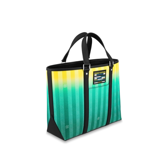 From dark green to almost yellow, the gradient Damier Stripes that decorate this Wkd Tote PM carry-all evoke the colors of an early spring sunset. The black-leather Louis Vuitton label as well as the black trim, handles and removable strap perfectly complement the gradient stripes, emphasizing the bag’s clean lines. Perfect for a weekend getaway.