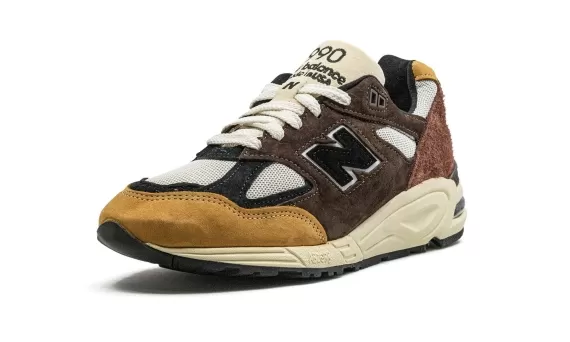 The New Balance 990v2 "Made In USA - Brown" is a colorway of the lifestyle shoe with brown accents. From Teddy Santis and New Balance’s “Made in USA” collection, the 990v2 in “Brown” features a white mesh base with brown pig suede overlays. A navy “N” logo appears on the sides of the shoe while “USA” branding is found on the hee... Read more