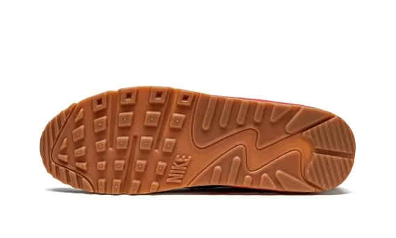 The Nike Air Max 90 ‘University Red’ is taken from the ‘Home & Away’ pack, inspired by the contrasting uniforms that a sports team wears either at home or on the road. The concept of changing colors is taken to literal extremes on the sneaker’s beige leather upper, featuring a rub-away top layer that eventually reveals a hidden ... Read more The Nike Air Max 90 ‘University Red’ is taken from the ‘Home & Away’ pack, inspired by the contrasting uniforms that a sports team wears either at home or on the road. The concept of changing colors is taken to literal extremes on the sneaker’s beige leather upper, featuring a rub-away top layer that eventually reveals a hidden finish. Unique branding elements include a red jewel Swoosh and a compass graphic on the tongue tag. Read less