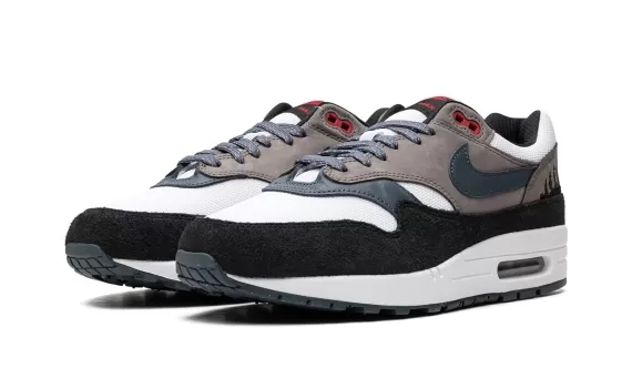 The Nike Air Max 1 in the "Slate Blue" colorway is a rendition of the classic performance running shoe, drawing inspiration from the scenic Pacific Northwest. Often referred to as the "Escape" colorway, this version of the Air Max 1 pays homage to the region with embroidered pine trees on the heel overlay, reminiscent of... Read more The Nike Air Max 1 in the "Slate Blue" colorway is a rendition of the classic performance running shoe, drawing inspiration from the scenic Pacific Northwest. Often referred to as the "Escape" colorway, this version of the Air Max 1 pays homage to the region with embroidered pine trees on the heel overlay, reminiscent of Oregon's lush forests. The design showcases a crisp white mesh base complemented by Slate Blue leather and Soft Grey nubuck overlays, creating a harmonious blend. A Slate Blue Swoosh accentuates the sides, contributing to the overall aesthetic. Additional branding elements include red "Nike Air Max" detailing on the tongue tag and red "Nike Air" embroidery on the heel. The look is rounded off with a black suede mudguard for a polished finish. Mark your calendars for the release date on May 25, 2023, and step into a piece of Pacific Northwest-inspired style with the Nike Air Max 1 "Slate Blue." Read less