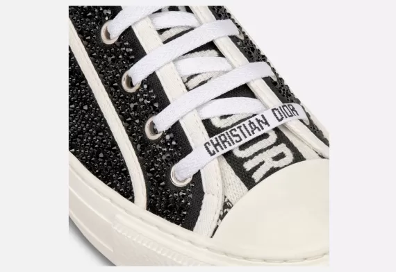 WALK'N'DIOR Sneaker - Black Cotton Embroidered with Strass