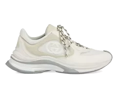 The Gucci Ace Sneakers blend elegant design with a touch of playful charm, offering a stylish addition to any wardrobe. These white and pink Ace sneakers from Gucci feature the iconic Interlocking G symbol, adding a touch of sophistication to the classic design. The durable rubber sole ensures both comfort and style, making them a perfect reward after acing that important business meeting. Slip them on and enjoy the feeling of accomplishment. Game, set, match. Read less