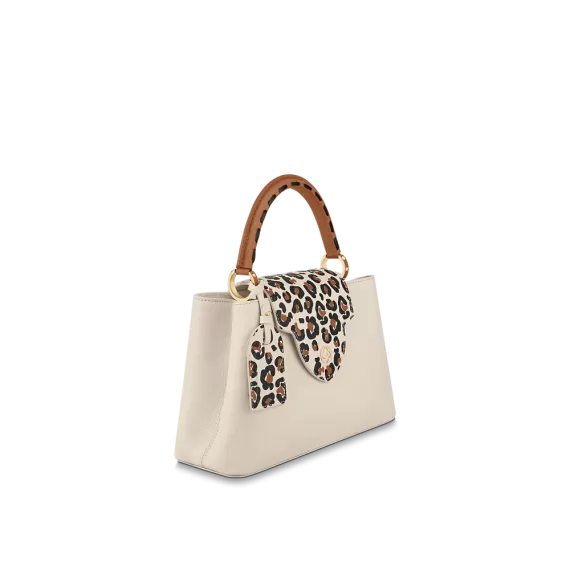This Capucines BB handbag comes from the Wild at Heart capsule, a highlight of the Fall 2021 season. Made from Taurillon leather in a luminous colorway, it features a finely crafted stitched leather handle, with a bold leopard print adorning the flap, name tag and detachable strap. This statement piece is a fashionable finish for any autumnal outfit.