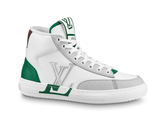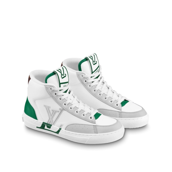 The Charlie sneaker boot is Louis Vuitton's first eco-designed model, and also its first unisex sneaker. This innovative hi-top features an upper made from a mix of recycled and bio-based materials, while its outsole comes in bioplastic from renewable sources. This bi-color version is decorated with an oversized LV Initials signature on the side.