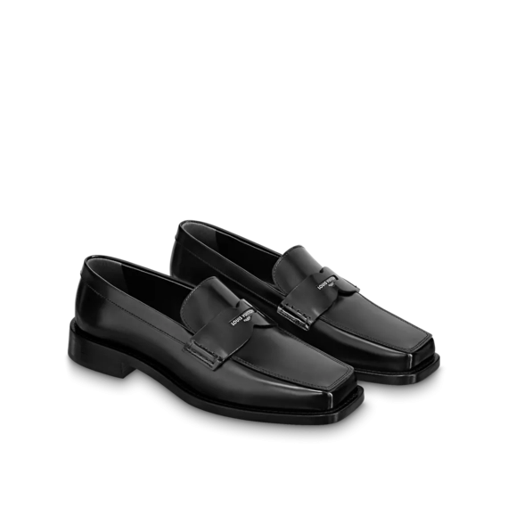 The Connelly flat loafer was the statement shoe of Louis Vuitton's Fall-Winter 2022 women's show. Nicolas Ghesquière's reinterpretation of the timeless college loafer, it epitomizes the cool, androgynous aesthetic of the collection. This version is crafted from glazed calf leather with the Louis Vuitton Paris signature stamped in silver on the strap.