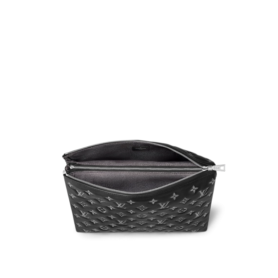 The Coussin MM handbag is fashioned from soft, pillowy lambskin, embossed with the Monogram motif. This edition features a wide Monogram Jacquard Denim strap, the latest iteration of the signature pattern, seen at the Cruise 2023 show. The woven strap, like the silvery chain handle, is removable, for a multitude of styling possibilities.