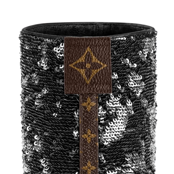 The Donna high boot is reinterpreted this season in shimmering, bicolor sequins, reflecting the disco theme of the Cruise 2023 show. This fashionable update of a classic Seventies style is characterized by its tubular shape and steady, square heel. The back of the boot is signed with a patch in Monogram canvas and a strip of mini Monogram canvas. Read less