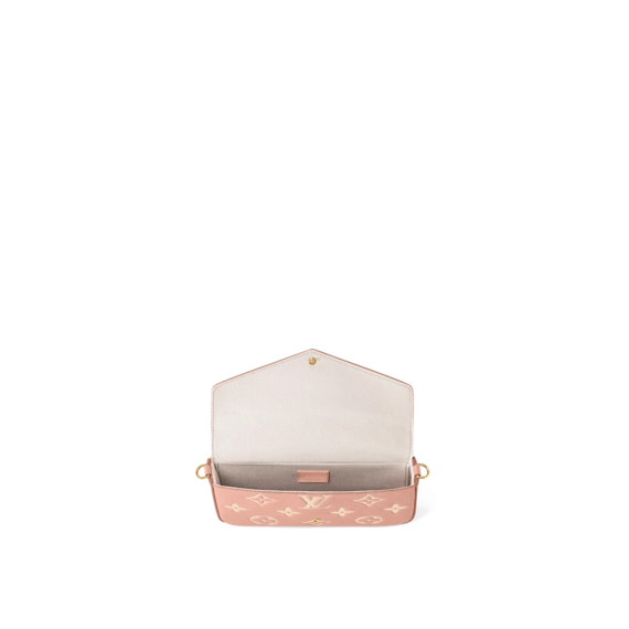 The Félicie Pochette is crafted from supple Monogram Empreinte leather, embossed with Louis Vuitton's iconic Monogram pattern. The bicolor palette brings added refinement to this elegant and versatile design, which features a removable, gold-tone chain, enabling it to be carried on the shoulder or as a clutch, as well as two removable pockets.