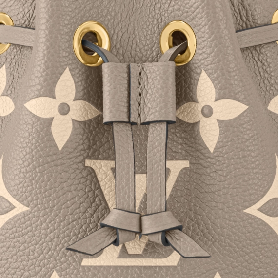 This bicolor version of the Nano Noé is crafted from supple Monogram Empreinte leather, embossed with the Monogram pattern. This miniature replica of the iconic Noé bag is a stylish way to carry everyday essentials. In addition to its practical drawstring closure, it features a removable handle and a removable, adjustable shoulder strap for different carry options. Read less
