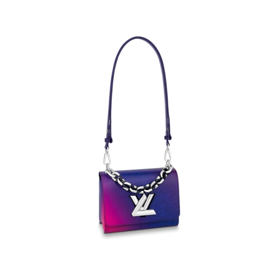 For Spring 22, a colorful reinterpretation of the Twist PM handbag. Made from Epi grained leather, this Twist PM handbag takes on the tones of sunset: vivid pink fading into dark blue. The all-over gradient treatment of the color is enhanced by the grain of the leather. A removable and adjustable leather smart strap allows multiple carrying options while a chunky bicolor chain brings style to this day-to-evening proposition. Read less